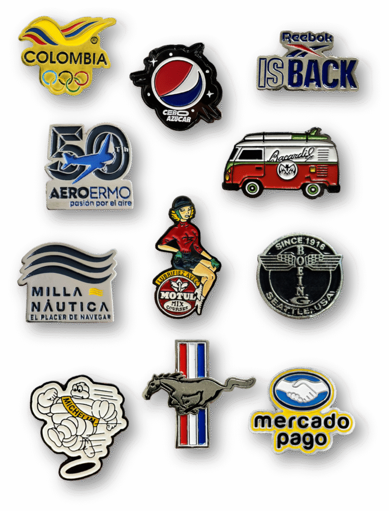 Piezas 100% metalicas ideales para representar tu marca, campaña o generar identidad visual. un producto versátil y con un gran impacto de recordacion.